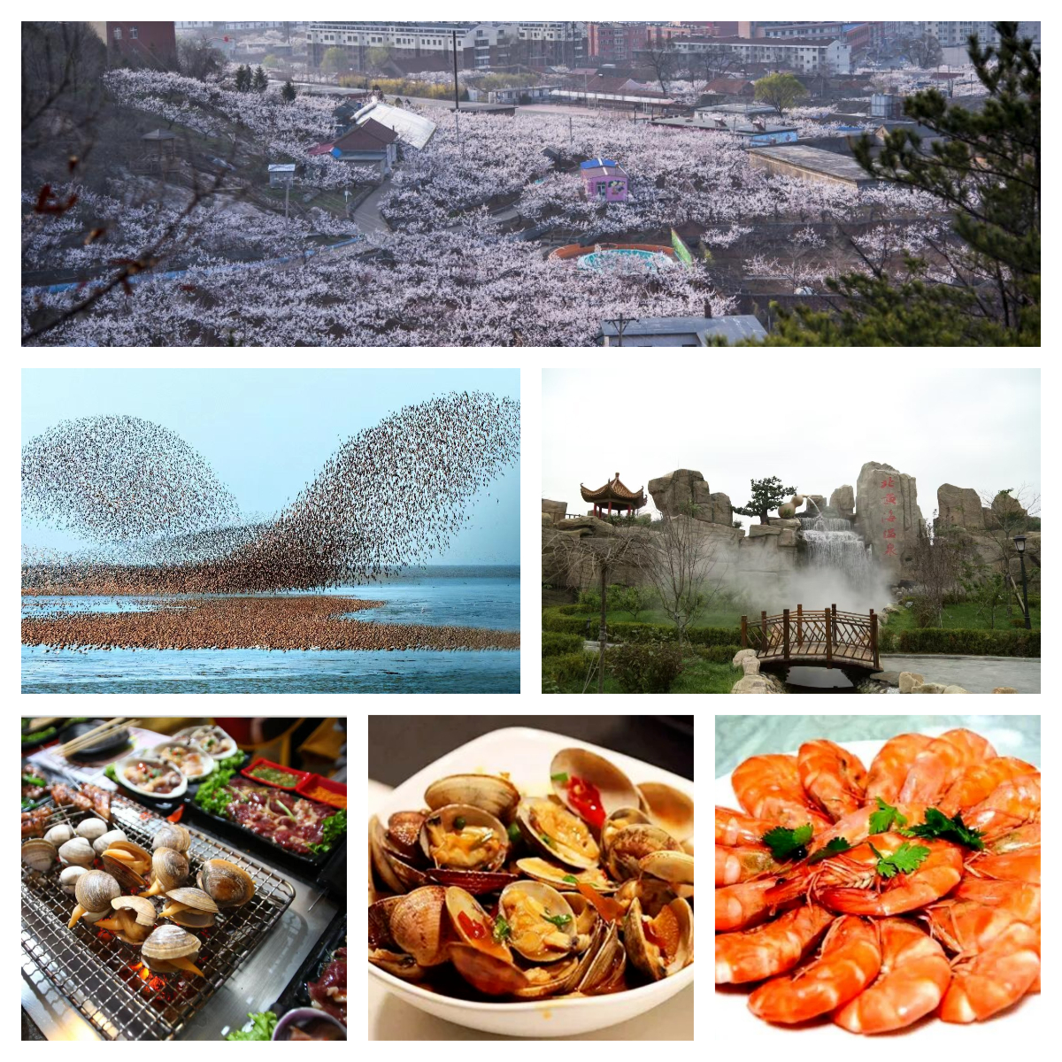 大孤山杏梅花→鸭绿江口国家湿地观鸟园→黄蚬子、杂色蛤、对虾→东港市北黄海温泉度假村